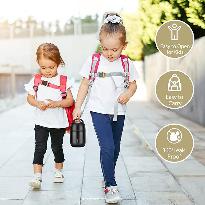 • 【Easy to Carry】 With silicone sealing ring, the insulated bento lunch box has been fully sealed. Confidently pack your leak-proof lunch container in your bag or backpack, it won’t leak when shaken or held upside down. Take your food thermo to school, work or travel without needing to reheat or refrigerate your food.
