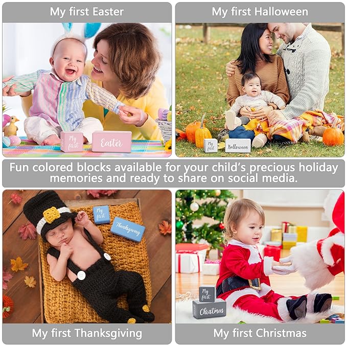 • Let’s Talk Events! Your baby milestones include Christmas, Halloween, Easter and Thanksgiving. Imagine those cute baby photoshoot outfits! Other words featured “My First”, “Today I Am”, “Look Who Is” and even school “Grade” - so you can use your monthly baby milestone blocks for their entire life!