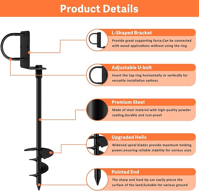• Adjustable L-shaped head: The trampoline anchors' adjustable L-shaped head with a wide helix provides enhanced stability and prevents movement, even in challenging weather conditions.