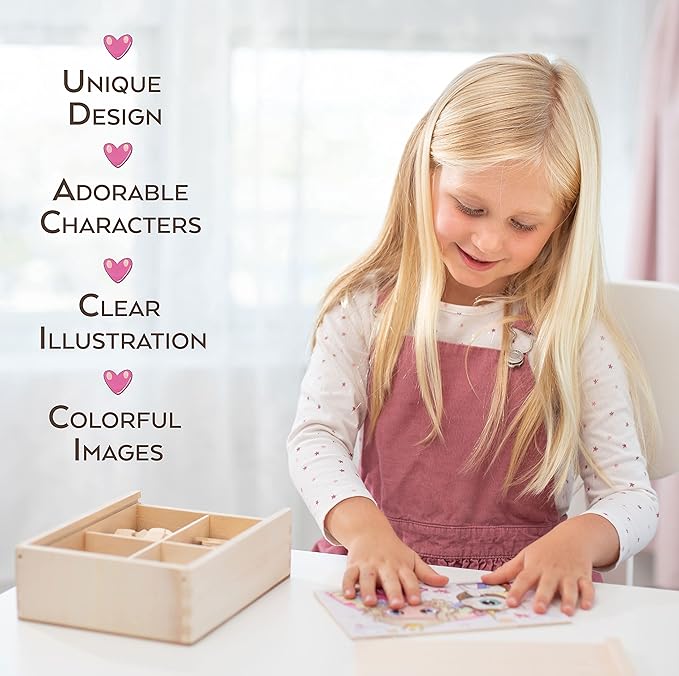• 🧩 Kids Puzzles Princess Set Comes in a Sturdy Wooden Box for easy transport and store puzzle princess. Made of quality wood, TOYLI girls puzzles for kids ages 4-8, puzzles for kids ages 4-6 are thick and durable for children.