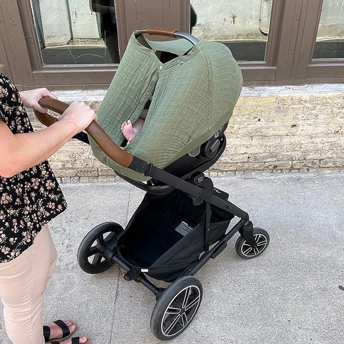 • PREMIUM COTTON FABRIC The car seat canopy is crafted from 100% cotton muslin for a soft, breathable cover that gives privacy and protects from the elements.