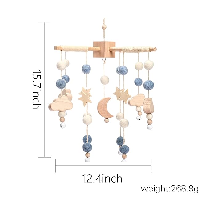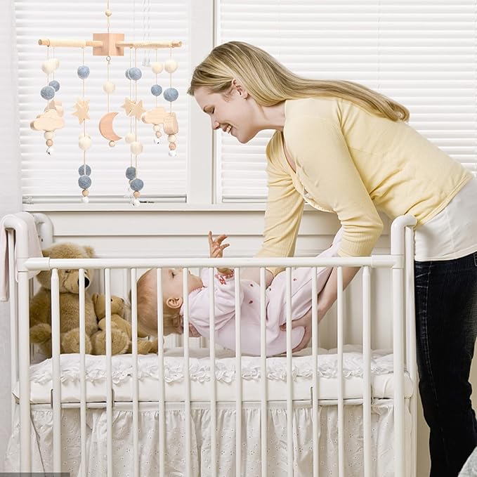 • 🌟【Engage & Delight Baby】:The gently swaying crib mobile will encourage your baby to focus and track, and the offset appendages help your little one explore the world to develop depth perception.They can be hung from hook in the ceiling or you can use a mobile arm attached to the baby crib,this not only helps your baby’s promote auditory, motor development and visual stimulation, and has a calming effect as baby settles into the crib or wakes from sleep.
