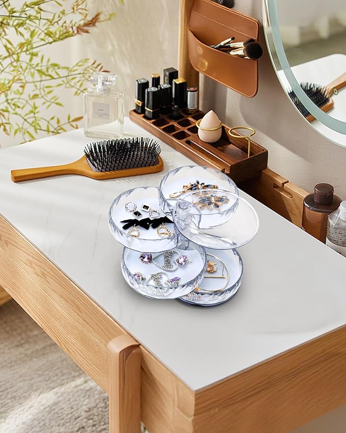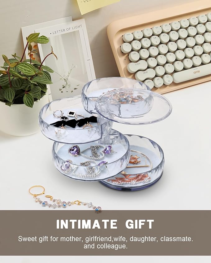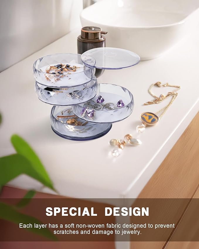 • ♥【Rotating Jewelry Organizer】- Simple and modern style, rotate into any look you like, excellent dressing table decor; it's a compact cylinder when closed, and isolate dust to better maintain the luster of jewelry.