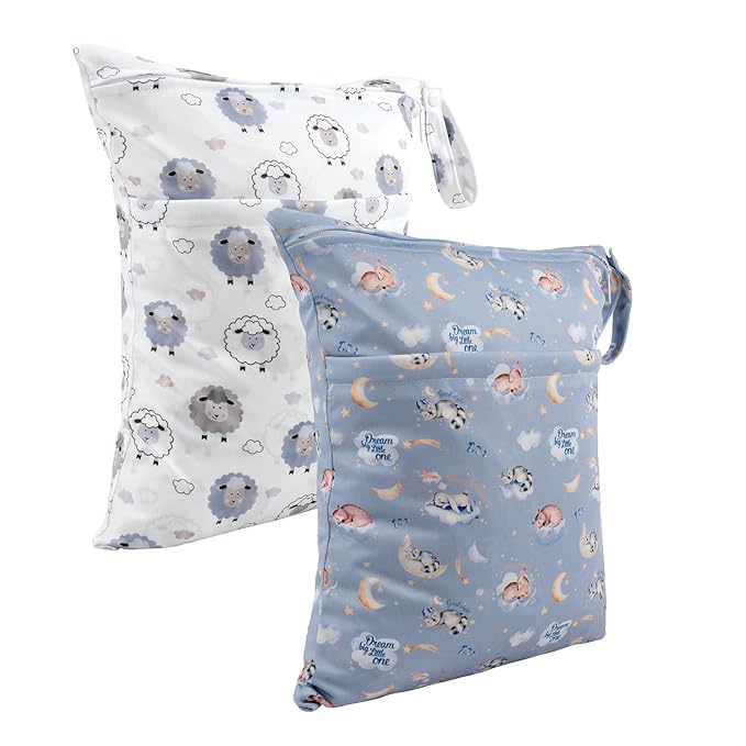 ALVABABY 2pcs Cloth Diaper Wet Dry Bags Waterproof Reusable with Two Zippered Pockets Travel Beach Pool Daycare Soiled Baby Items Yoga Gym Bag for Swimsuits or Wet Clothes LZD2122