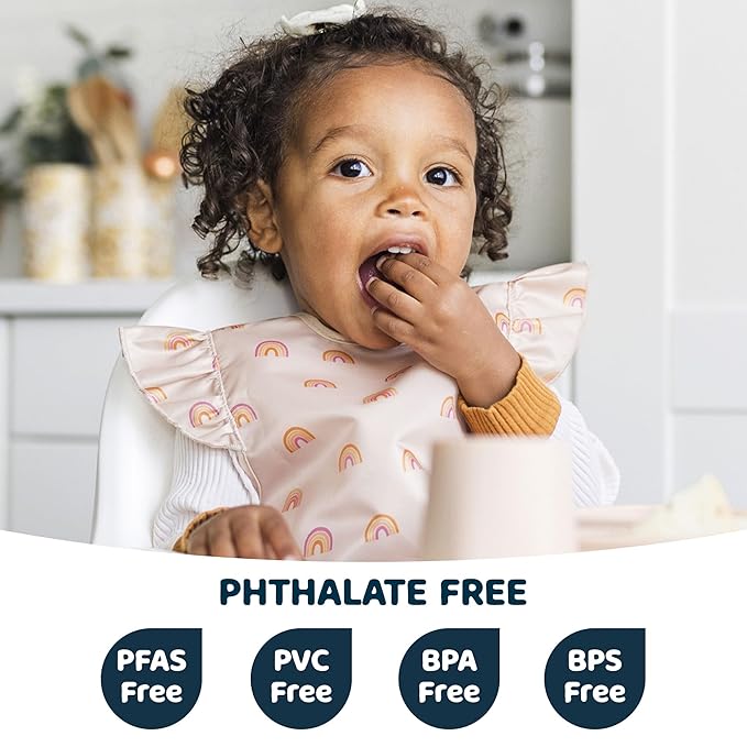 • EASY TO USE: Featuring a tug-proof closure that keeps the bib secure during baby-led weaning yet removes easily, our waterproof bibs won’t snag hair or irritate skin. Perfect for toddlers 1-3 years and messy eaters, the hassle-free design lets you focus on feeding fun instead of scrubbing food stains!
