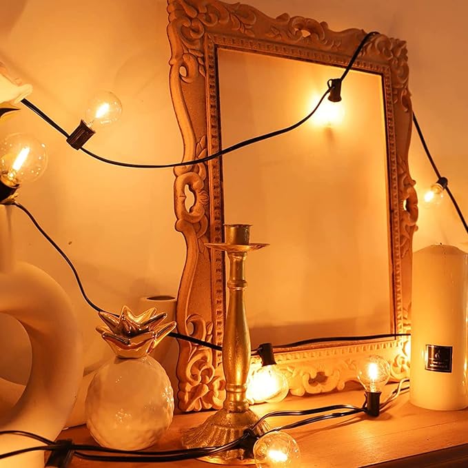 • 【End to End Connectable】G40 25 foot patio string lights has 25 sockets spaced 12 inches apart, 6" lead with male plug, and 6" tail with female connector, easily connect up to 28 strands end-to-end to cover larger areas—great for weddings, parties, and outdoor events.