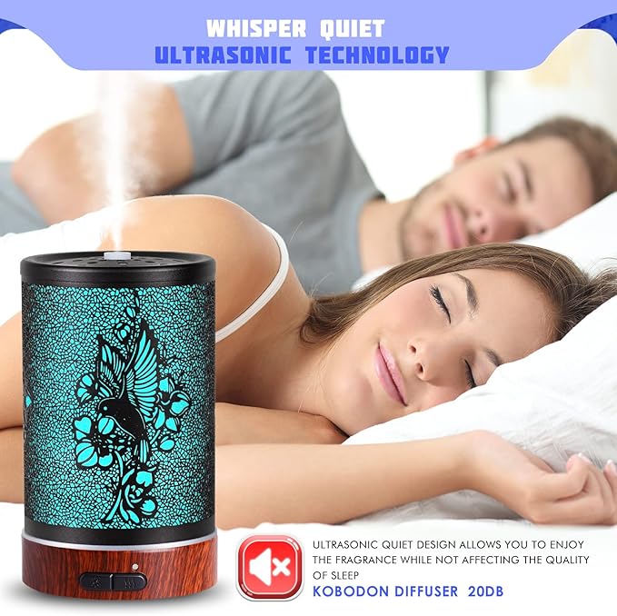 Essential Oils Diffuser,Aromatherapy Diffuser,Birthday Gifts for Women Mom Grandma,Metal Cool Mist Humidifier with 7 Colors Lights Waterless Auto Off Air Diffusers (A-Hummingbird)