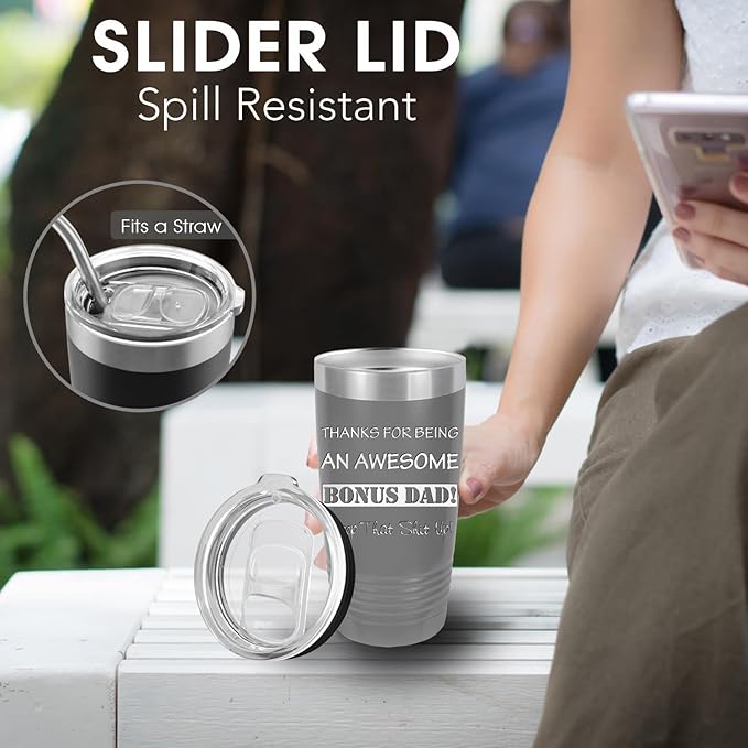 iProductsUS Personalized Tumbler for Men, Insulated Stainless Steel Travel Coffee Mug, Laser Engraved Custom Cup, Slider Lid Included, Gifts for Dad, Husband (Gray, 20oz)