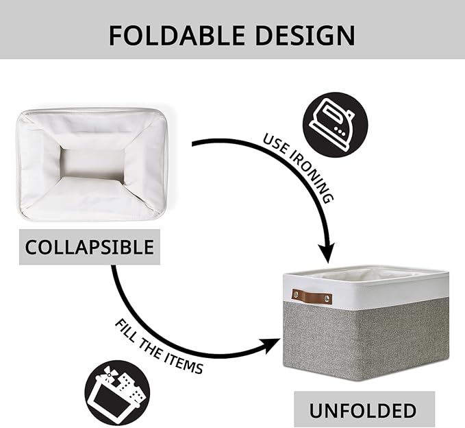 DULLEMELO Fabric Baskets for Storage, Office, Home,Nursery,Organizing Baskets for Shelves, Bedroom, Toys,Gift,Fabric Storage Basket with Handles(White&Grey,15"x11"x9.5",4-Pack)