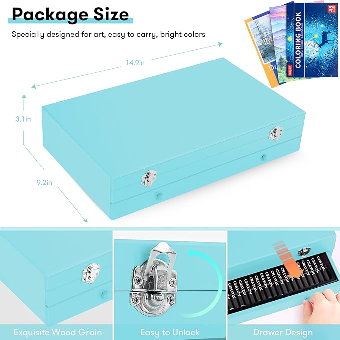 • 【Premium Quality, Deluxe Art Kit】The Deluxe art case has everything you need to get started creating in a compact wooden case! You can begin drawing, coloring and painting as soon as you open the box. Specially designed with 2 big sketchbooks, 1 coloring book, 1 Gift Box. Great art set for any level of artist. This art case makes a great Gift for adults and kids, girls and boys, they are going to have so much fun!