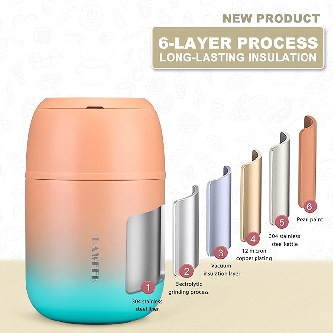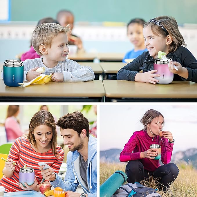 • 【Easy to Carry】 With silicone sealing ring, the insulated bento lunch box has been fully sealed. Confidently pack your leak-proof lunch container in your bag or backpack, it won’t leak when shaken or held upside down. Take your food thermo to school, work or travel without needing to reheat or refrigerate your food.