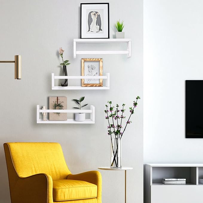 AZSKY Floating Bookshelf for Kids Room White Nursery Shelves Picture Ledge Wall Shelves for Bathroom Decor Kitchen Spice Rack Book Shelf Photo Organizer for Baby Nursery Décor 16 Inch Set of 3