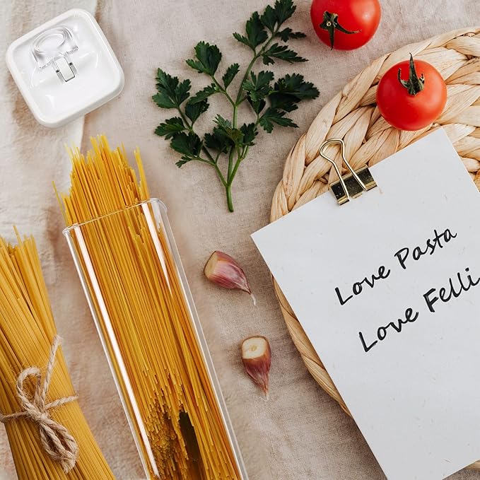 • 3 PIECES TALL SPAGHETTI CONTAINER – ITALIAN PASTA SET : Set includes 3pc 4 inch width REGULAR-Tall sized containers ( 2.0 quart), each size is perfectly calibrated to store common household staples including long noodles, spaghetti, fettuccine, linguine, lasagna, macaroni, farfalle, fusilli, also great for pantry, kitchen counter, makeup, bathroom, office supplies organization, or craft storage.