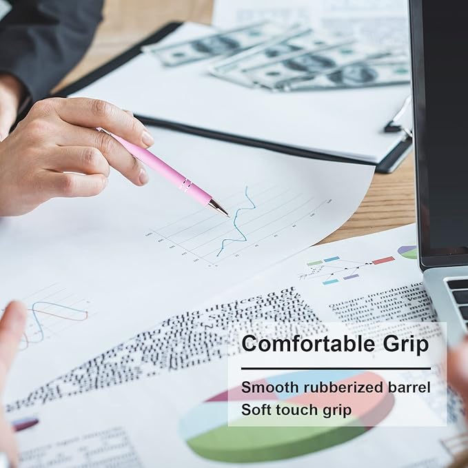 • 【COMFORTABLE GRIP】: The smooth rubberized barrel gives a soft touch grip for extra comfort, smooth writing and just-right weight for effortless.