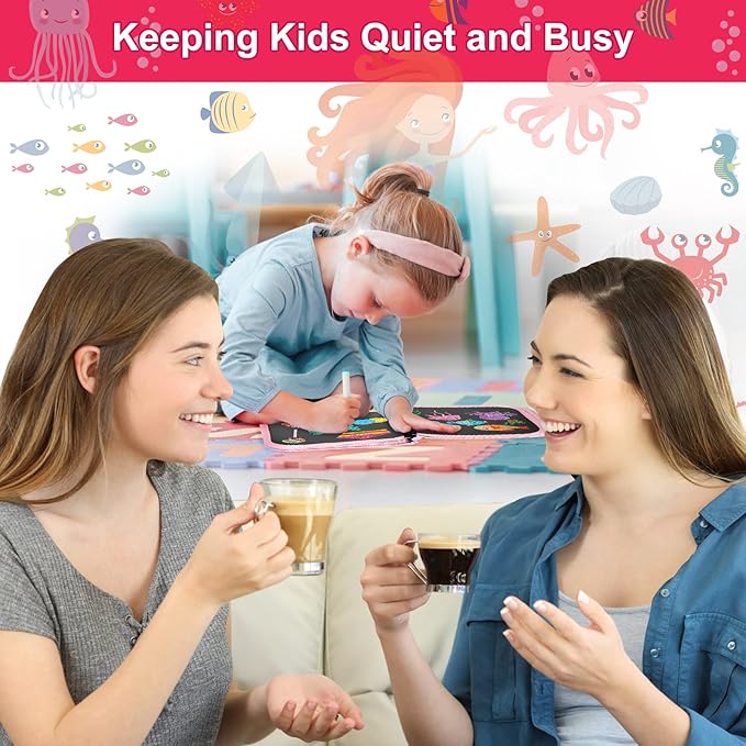 Erasable Doodle Set for Kids - Reusable Magic Drawing Book with 12 Watercolor Pens 14 Page Drawing, Road Trip Car Game Writing Painting Set for Boys and Girls (Mermaid)
