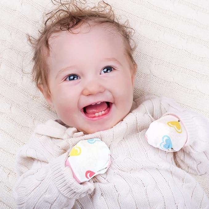 • Thoughtful design: the wrist parts of the cotton gloves is elastic, making them easy to put on and take off, keeping the gloves stayed tightly on the baby's small hands and fit snugly to keep the baby from self scratching