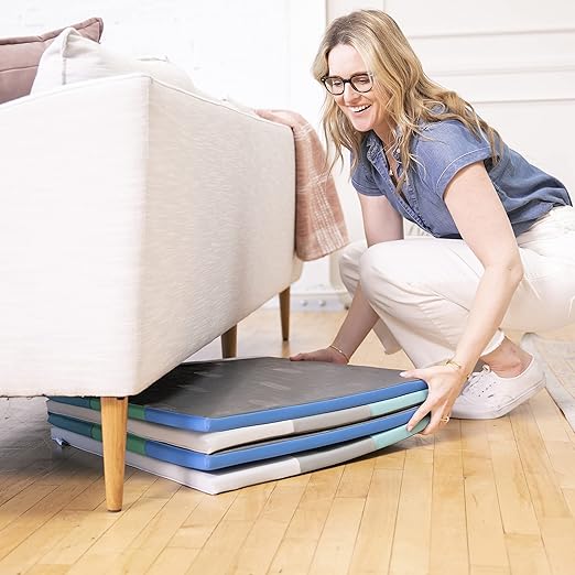• Folding Design: Quickly assemble with sewn-in stay-put fasters; mat folds into a compact square for space-saving storage in closets, large bins, or under the bed when not in use