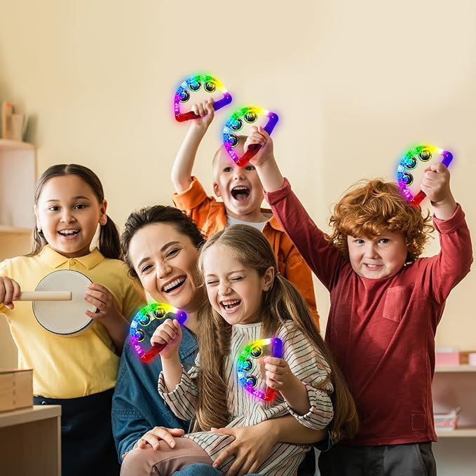 Aywewii LED Tambourine, Light Up Toys Handheld Musical Flashing Tamborine Sensory Toys Autism Toys Party Supplies for Birthday Anniversaries Gifts for Kids Adults Teens (6 Pack)