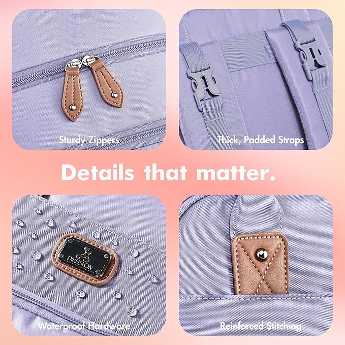 • Durability to last: Our maternity backpack diaper bag is crafted from lightweight and waterproof polyester fabric. Includes spill-resistant and easy-to-clean lining. You don't need to fear spilled milk or water. Non-fraying stitching, easy-tote top handle, back ergonomic design and thick padded cushioned shoulder straps will release stress and bring comfort while carrying.