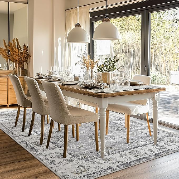 jinchan 8x10 Area Rugs for Living Room - Machine Washable Vintage Floral Distressed Design Stain Resistant Boho Carpet Low Pile Non-Slip Rug for Bedroom Dining Room Home Office (8‘x10',Grey)