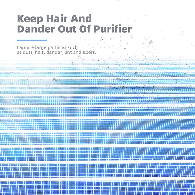 • Prevent Clogging: When hairs, dander, and other large particles meet the pre-filter layer, they will be captured them and keep it outside to prevent the air purifier from clogging.
