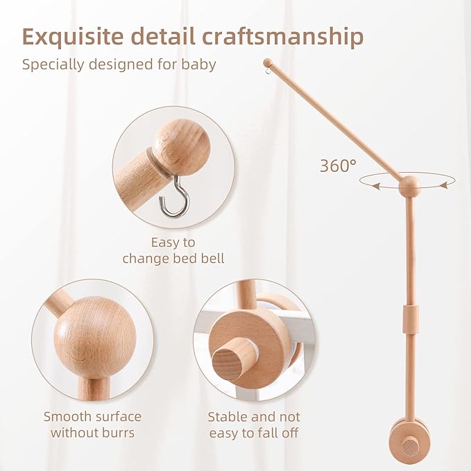 • 👶 HEIRLOOM QUALITY, MINIMALIST DESIGN - Designed with hanging holes on the arm bracket, so it can be used to hang Baby mobile, bell, toy or little plush doll with strings, bring much fun for your baby after hanging decorations.