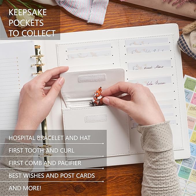 • Deep Keepsake Pocket - Beautiful baby 1st year memory book and a shower gift with a deep keepsake leather envelope to store baby's hospital bracelet and other memorable items.