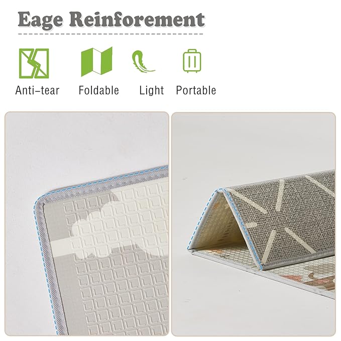 • More Sturdy: This baby play mat corners and edges are reinforced and sewn, making this baby play mat a bit more durable than the ones without the sewn edges