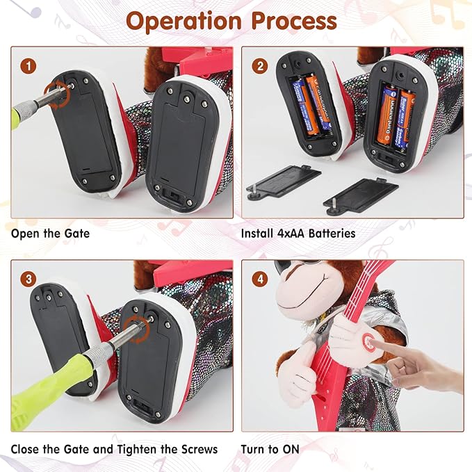 • 【Development of Musical Intelligence】This dancing guitar monkey toy is not only educational, but also suitable for the whole family to play together. The perfect guitar monkey toy for home decor and parties, creating a lively and warm atmosphere. Give your child a helpful birthday gift.