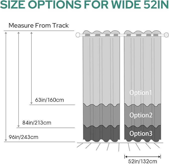 • ★PACKAGE MADE: Your package includes two gradient curtain panels. Each panel measures 52 inches in width, a total width of 104 inches. 8 silvery grommets (1.6-inch inner diameter) of each panel make the blackout curtains easy to install and slide.
