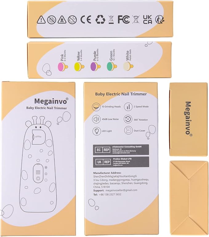 • ❤️ [Unique Design & Ideal for Gift] - With a unique childlike design and packed in a neat box, it is a perfect gift for baby shower. Come with a storage bag, the electric toddler nail file is easy to store and carried anywhere. If you have any questions about Megainvo baby nail grooming set, please feel free to contact us. We will provide you with satisfactory customer service.