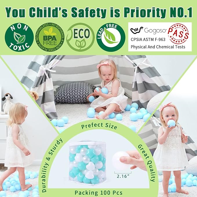 • Safe and Durable Fun: Enjoy peace of mind with our pack of 100 non-toxic toy balls, featuring star heay and balls. Crafted from food-grade PE material, these balls are phthalate-free, BPA-free, lead-free, and non-PVC plastic, ensuring safety without compromising fun. Each thickened ball is more durable and brightly colored, promising hours of child-safe play.