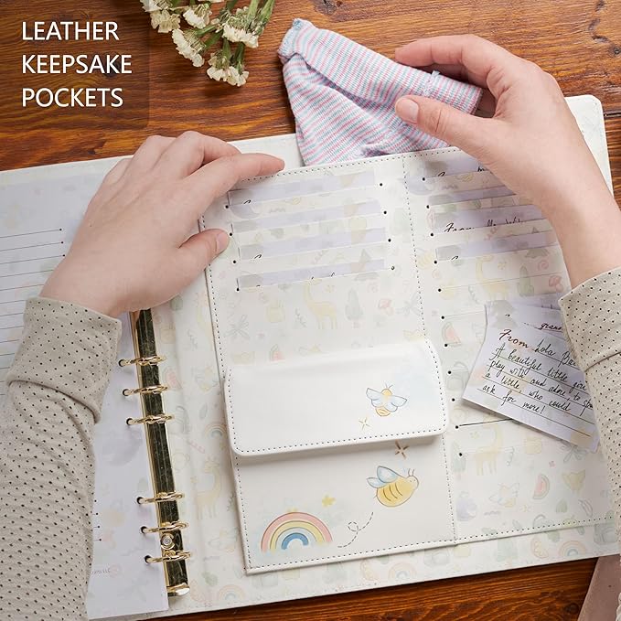 • Leather Surface, Exceptional Quality – The baby journal memory book cover and outer surface of the baby keepsake storage box are made of faux leather of exceptional quality and durability. The interior of the baby keepsake box is upholstered in an elegant gentle turquoise flannel fabric. Beautiful baby album and memory book set and a shower gift for girls and boys.