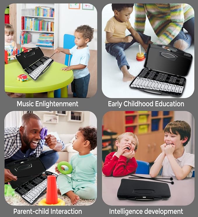 • Friendly Design - Glockenspiel is specially design for children, sound blocks with perfect tuning, Each of the 25 sound bars is elaborately made.