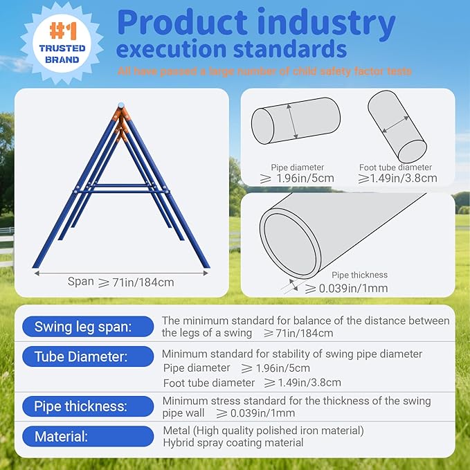 • MILITARY-GRADE SAFETY ENGINEERED: Exceeds ASTM F1148 standards with triple protection: Reinforced joints with cushioned lock-nuts prevents pinching injuries, 1mm-thick high-polish iron pipes 1.96" main tube/1.49" leg, tested for 500lbs, 71in ultra-wide leg span ensuring zero tip-over. Anchored by 6 spiral ground stakes