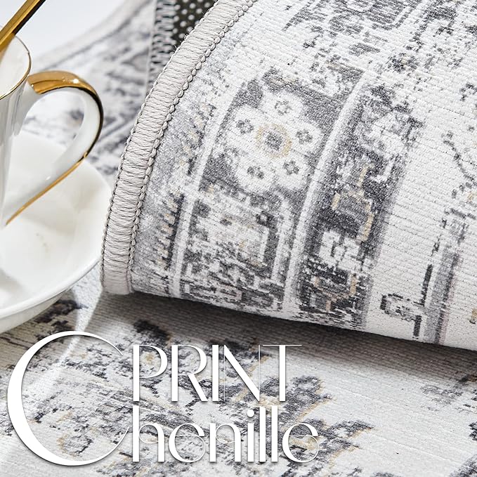 jinchan Hallway Runner Rug 3x10 Machine Washable Runner Rug Grey Vintage Floral Design Non-Slip Low Pile Ultra-Thin for Kitchen Laundry Room Bedroom Farmhouse (3‘x10',Grey)