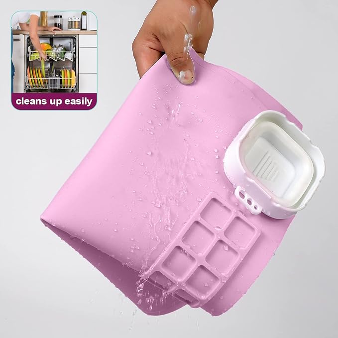 • [LARGE SILICONE MAT] - The size of the silicone artist mat with a water cup is 20×16 inches. The slightly raised edge keeps everything on the art mat.