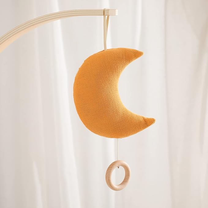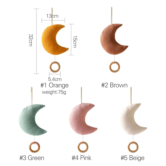 • πŸŒ™ DEVELOPMENTAL CAUSE AND EFFECT - No battery required. The soft moon pull musical features an enclosed mini mechanical music box that plays Brahms' Lullaby when the cord is pulled down. The cord will contract while the music is playing. Music plays approx. 1.8 mins. per tug.