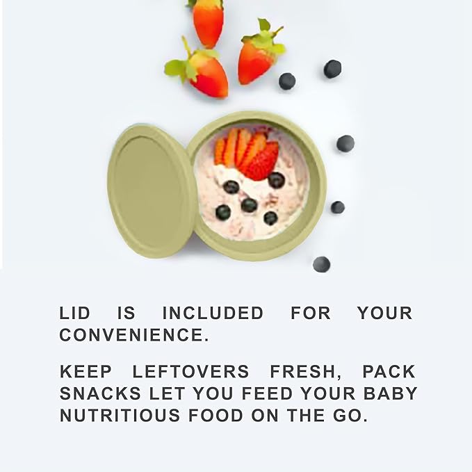 • DESIGNED FOR ERGONOMICS: Food and feeding time can be messy. Thanks to our ergonomically designed self-feeding bowl for babies, eating becomes easier and more fun for your babies. Don't stress about the mess! Our baby bowls with suction keep your baby's food from spilling. With its convenient size of 4.8" x 4.5" x 2.7", our baby bowl can easily fit any brand of highchair. Our microwave safe bowls with lids for toddlers are also temperature-resistant, so you can heat up your baby's food safely.