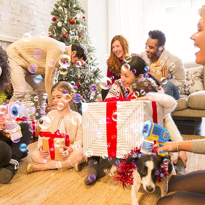 • ❤Must Have Bubble Guns for Party:You just put in batteries 4AA, screw the bubble bottles that come with it on to the gun and you're ready to go. Perfect for Valentines Day,Prom, Activity, Ceremony, Carnival, Birthday Party, Party Favors, Halloween, Weddings, Easter Basket Stuffers, Christmas, Beach, Pack, Backyard Party Indoor and outdoor. The ideal toddler gifts toys for boys and girls ages 3, 4, 5, 6, 7, 8...