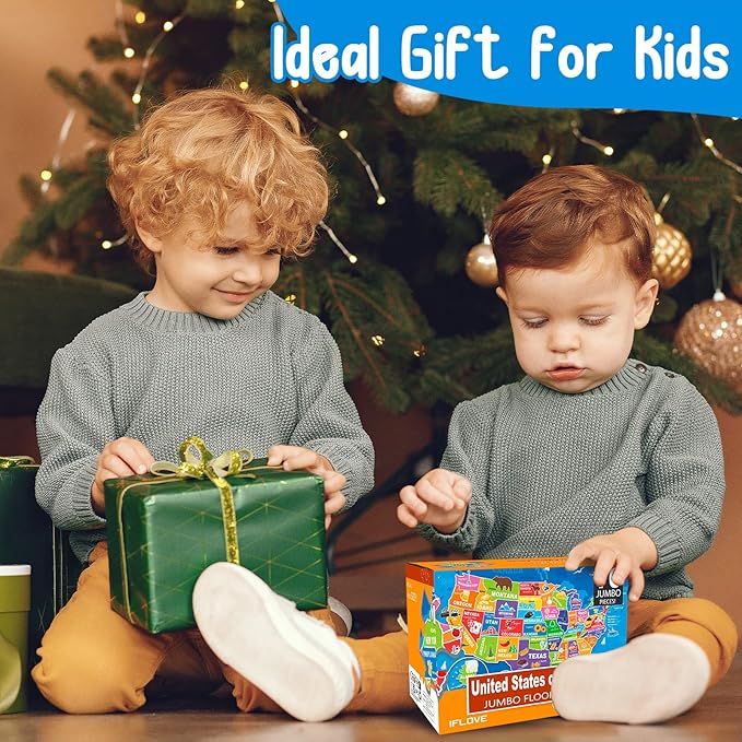 • Amazing Gifts for Kids:Total dimension of 35.4x23.5 inch when laid out. Features puzzle pieces with accurate shapes of each state and showcases interesting landmarks in different locations.Comes in a gift box for carrying and easy storage. A good idea kids gifts of birthday, Christmas,Easter for Ages 4-8, 5, 6, 7, 8-10 year olds