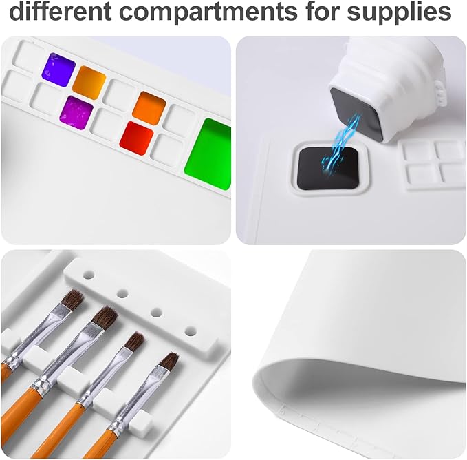 • [UNIQUE DESIGN] - Silicone painting mat has a collapsible attached cup with brush holders on the side and top, built-in paint wells, and brush rests. Keep clean while creating efficiently.
