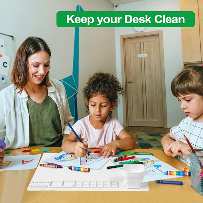 • [LARGE SILICONE MAT] - The size of the silicone artist mat with a water cup is 20×16 inches. The slightly raised edge keeps everything on the art mat.