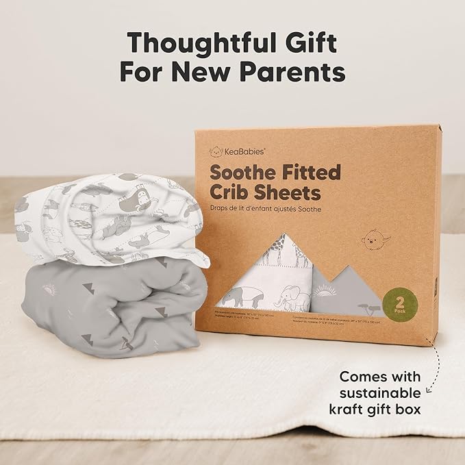 • 2-Pack Baby Crib Sheets - KeaBabies Soothe Fitted Crib Sheets for boys and girls; fit standard crib mattresses (52"x28" with height 3" to 8") perfectly, offering your baby a safe and restful sleep.