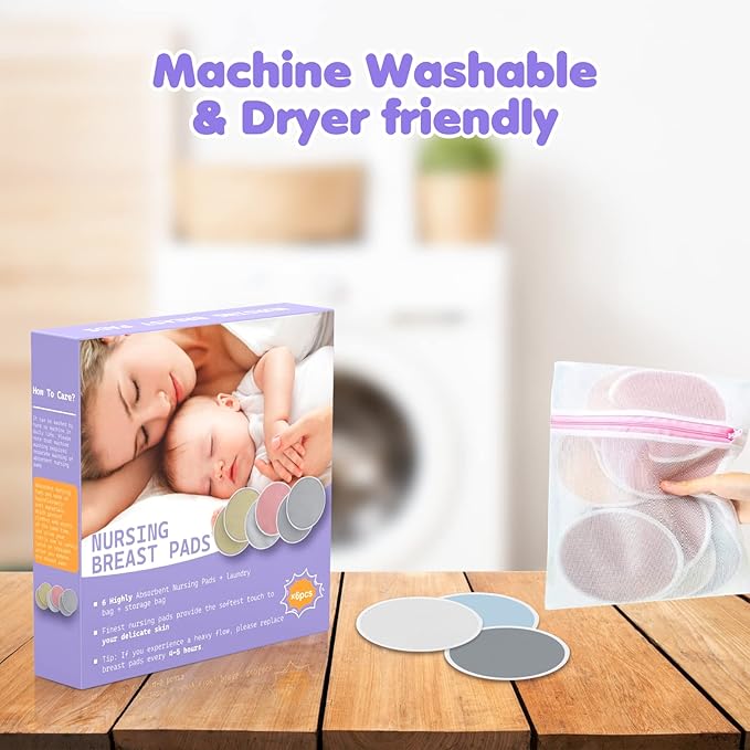 • WHAT YOU GET: This set includes 6 nursing pads, a laundry bag, and a travel storage bag, all packaged in a gift box—making it a great choice for new moms. For best results, wash before initial use. Machine washable and dry-able.