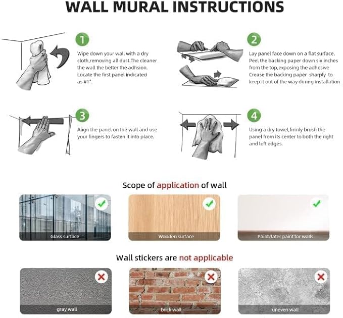 • Peel and Stick: You can use your imagination to create your own decorative style as all patterns can be freely arranged. Self-adhesive backsplash decals are easy to stick! Just peel and stick the decal on the wall, no transfer film, no cutting. Even children can do it independently! It is recommended that you plan where you want to paste so as not to repeat the paste and destroy the adhesion of the wall decal