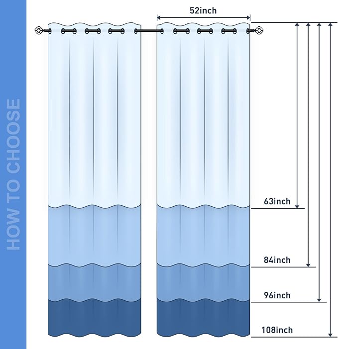• Package Includes: Set of 2 Blackout Curtains Panels; Each panel measures 52" wide x 84" length with 8 grommets top each. Quality fabric feels soft and heavy.