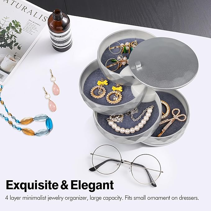 • ♥【Rotating Jewelry Organizer】- Simple and modern style, rotate into any look you like, excellent dressing table decor; it's a compact cylinder when closed, and isolate dust to better maintain the luster of jewelry.