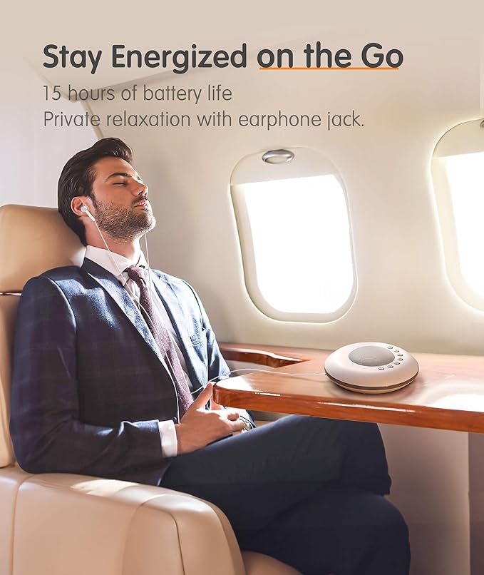 • 【Rechargeable Battery and Portable】The portable noise machine has a Large-capacity Backup Battery that lasts for over 15 hours and compact size of 6*6*1.5in,enjoy relaxation anytime and anywhere.Whether it's on the bedside table to accompany your nightly sleep,or in the office to help you nap and recharge,or even on your travels to create favorable conditions for your rest.
