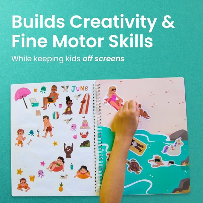 • 1st kids sticker book brand to use spiral binding to keep it flat on the table or in your kid’s small lap. Innovative sticker books for kids ages 4-8 makes an amazing kids travel activity